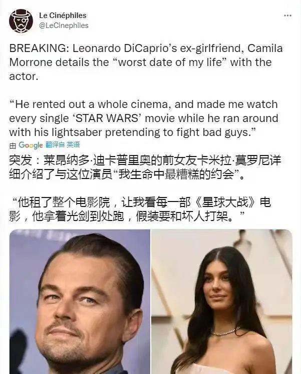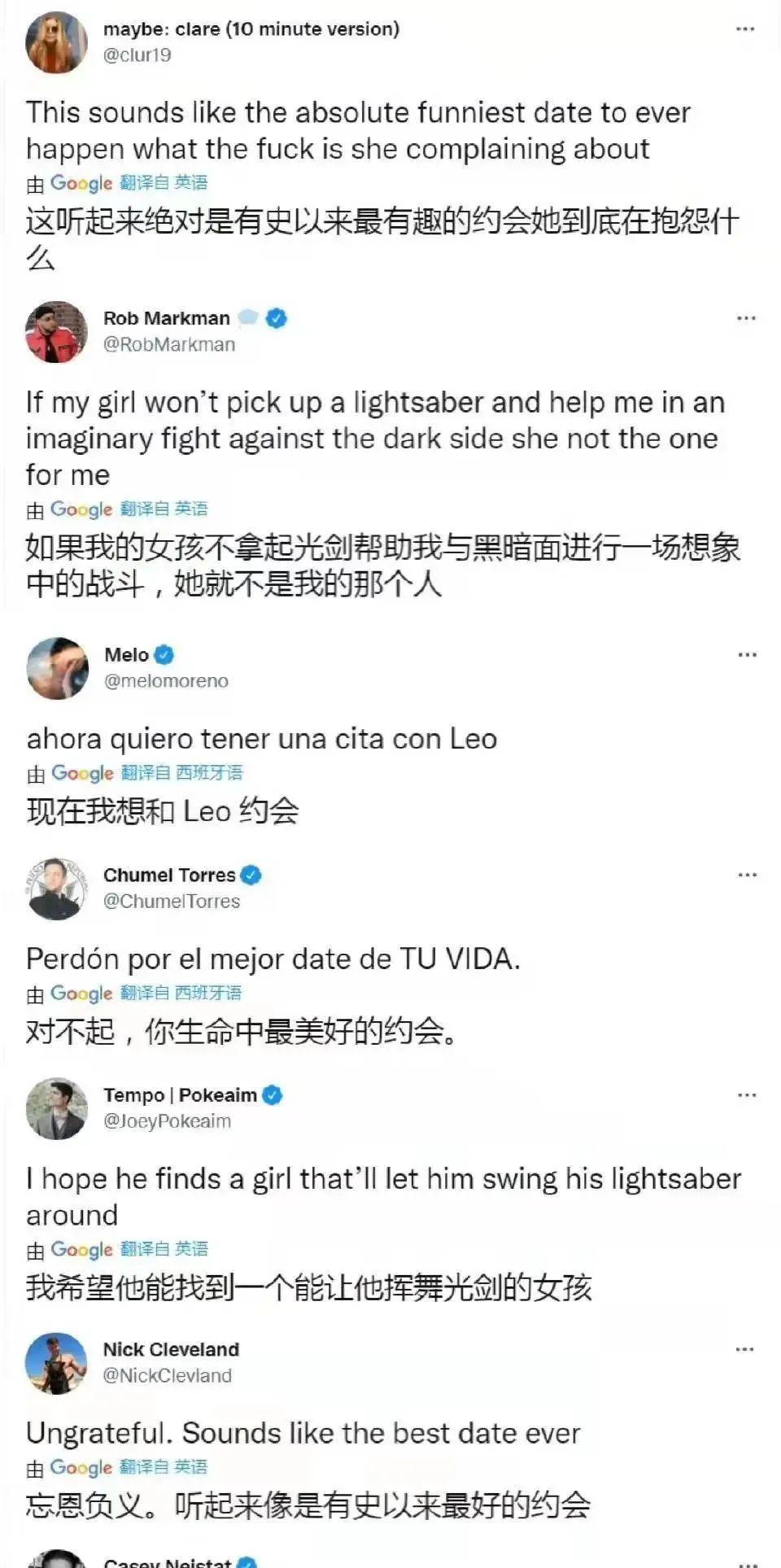 有网友表示女友和小李子的约会一定很糟糕,然后脑补小李子拿着光剑到处跑和坏人打架的场景。