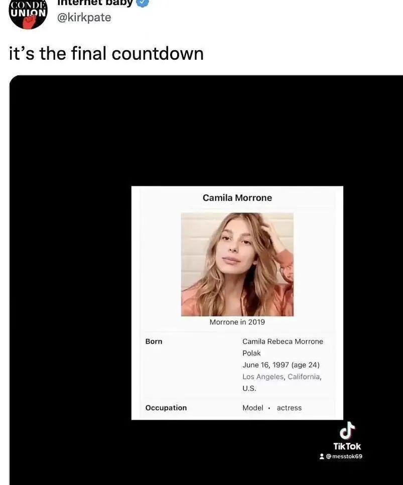 还未正式分手前,卡米拉 · 莫罗尼便被大量网友恶意玩梗,替她迎来分手倒计时 ……