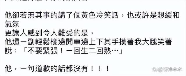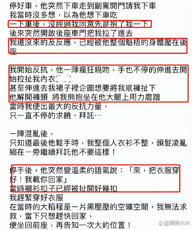 第二位受害者是在车上被强行侵犯,时间是 2011 年。当时也是借机送人回家动手动脚,态度无耻用词露骨,令人作呕。
