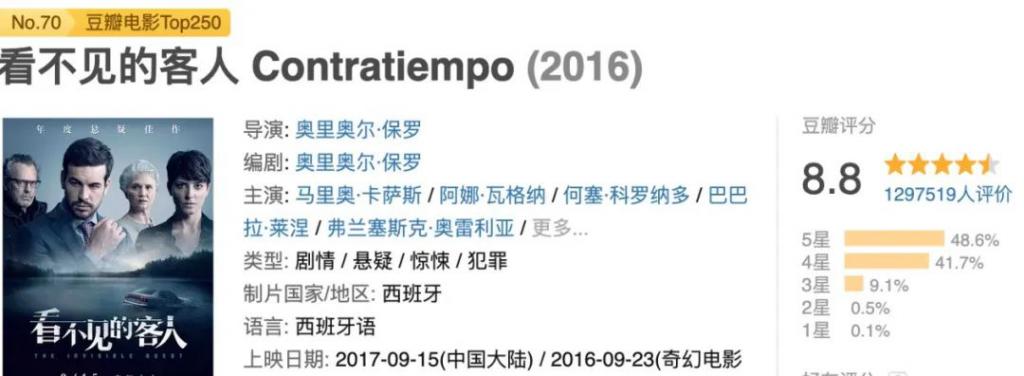 豆瓣评分高达8.8,直接冲进 top250 榜单里的第 70 位。