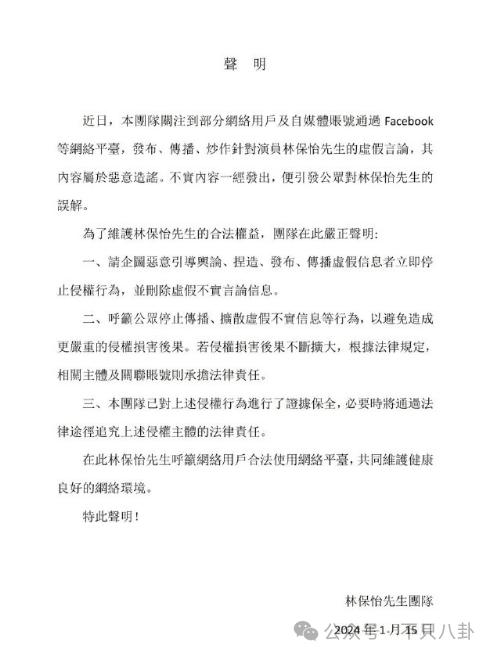 还发了两份声明:简繁体字各一份 ↓