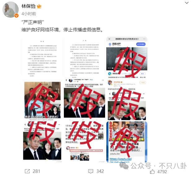 果然,有媒体就此向林保怡工作人员求证,对方直接称是假新闻。很快,林保怡本人也发微博打假 ↓