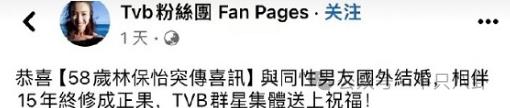 平地一声雷,林保怡结婚了?还是和相处了 15 年的男友??