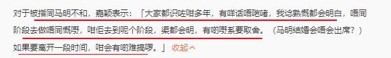 马明还承认郑嘉颖一早通知他没空参加婚礼,但他能理解。
