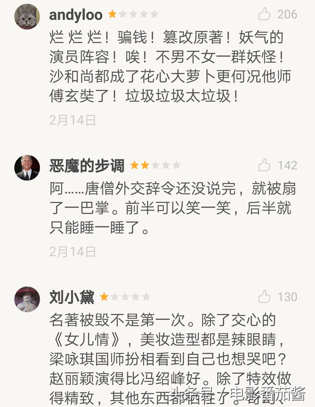 在热门评价中,有网友表示这部电影就是对西游题材的恶意篡改,真心是毁名著系列。