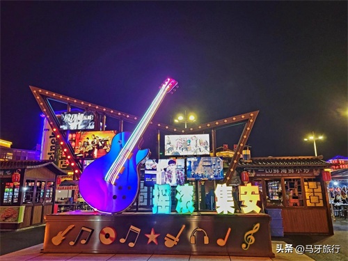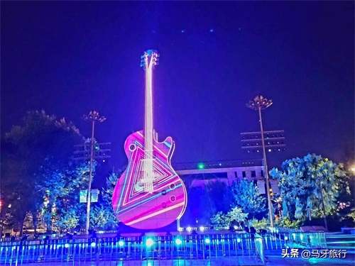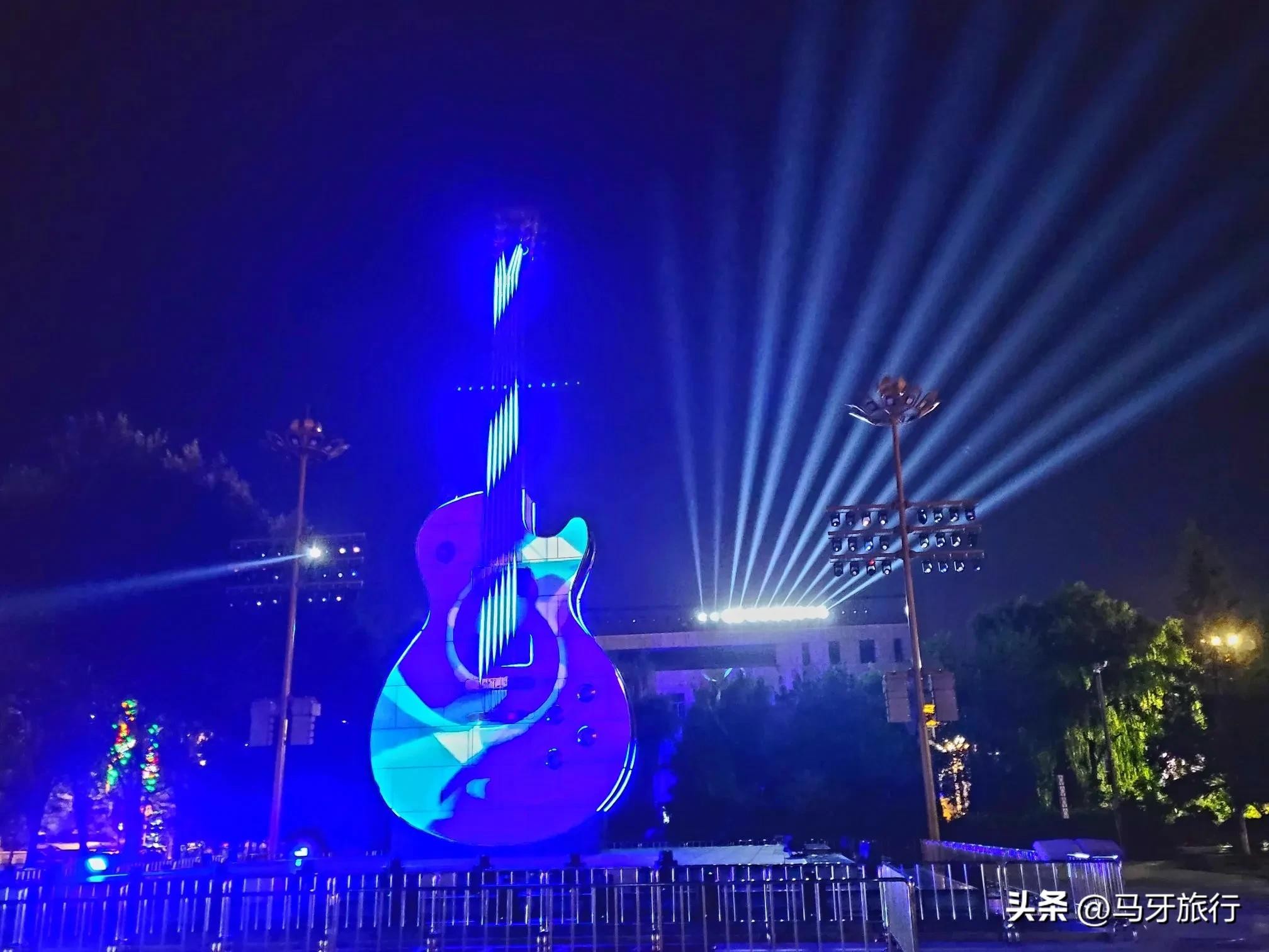 每天夜幕降临,都会来一场大吉他灯光秀 在流光溢彩,热情四射,动感十足的摇滚乐中大吉他凑出《缝纫机乐队》电影主题曲及好些流行摇滚歌曲,现场已经站满了年轻人跟着摇滚乐在那激情澎拜的引项高歌特有感染力,而我们仿佛也回到我们曾经的青葱岁月,崔建是我们那个年代最美好最疯狂的记忆,如今摇滚乐依然那么青春富有活力依旧未老,而我们却由清纯变得世故一不小心已经在过退休生活了,青丝已生白发,真是往事不堪回首。