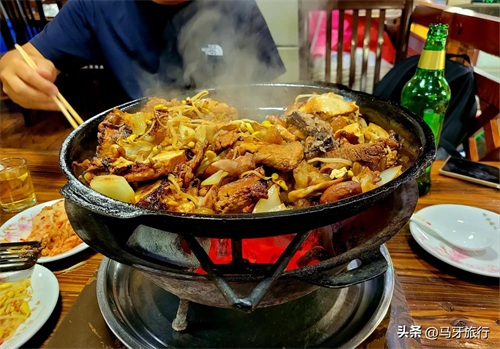 经过市政府便是高丽火盆一条街,这是一条很有民族特色的步行街,约有十几家高丽火盆店。