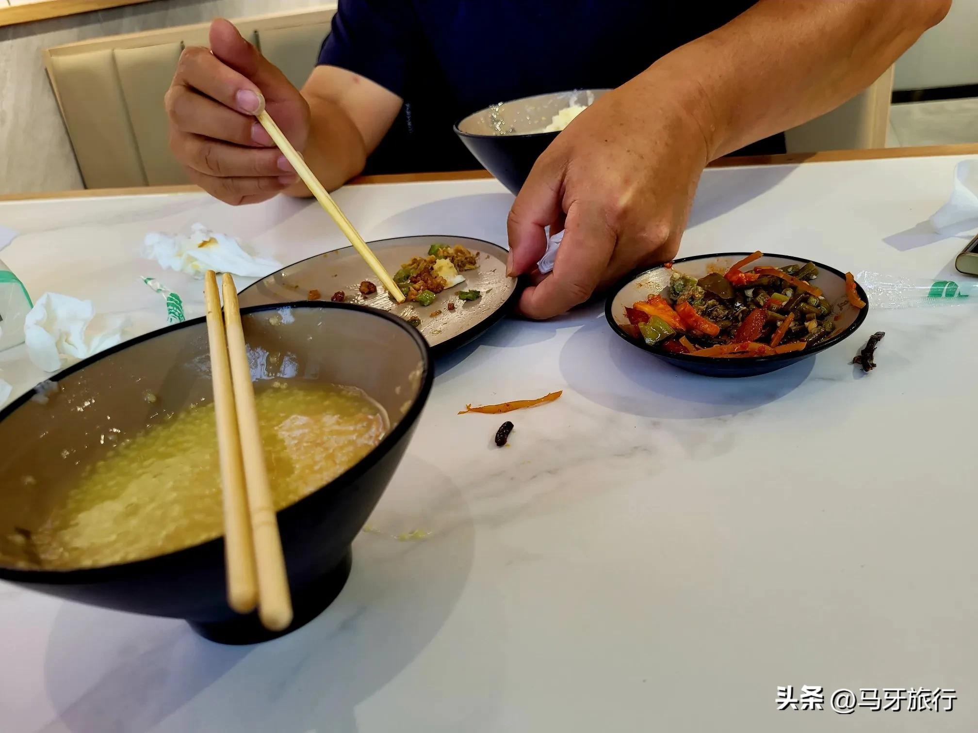 主要以包子为主其它还有拌饭面条等,3元一碗的粥可以不限量续粥,粥有四五种我分别尝了皮蛋瘦肉粥、小米粥加两个包子已经很饱,包子很好吃,馅好多确实是有二两重,红烧肉包子最好吃。