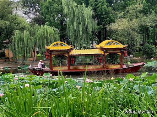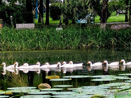 参观完毕回车上午睡休息一下然后晚餐准备到高丽火盆一条街去尝尝高丽火盆,穿过莲花公园便是集安市市政府。