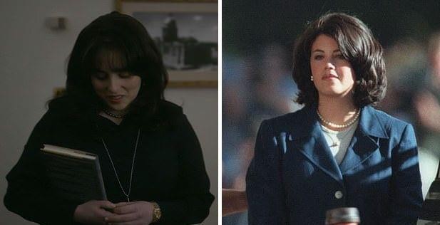 莫妮卡·莱温斯基与比尔·克林顿的初吻出现在《弹劾:美国犯罪故事》第二集中。克里夫·欧文饰演前总统克林顿,比妮·姚饰演他的秘密情人。