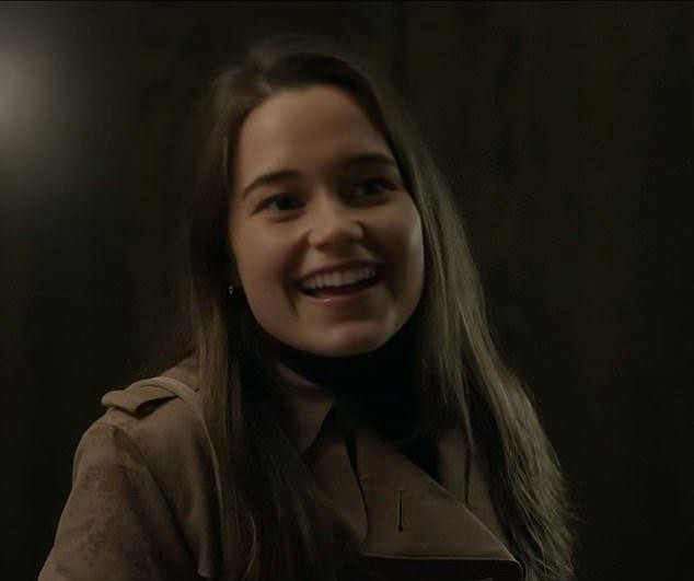 剧中演员扮演的莱温斯基,1998年8月6日站在美国联邦法院的莱温斯基。