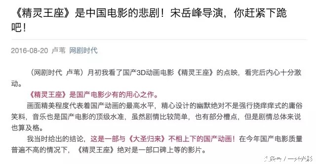 曾是《霸王别姬》和《活着》等知名电影的编剧发了这样一篇新闻,他让《精灵王座》的导演宋岳峰学《百鸟朝凤》的制片人方励一样下跪。