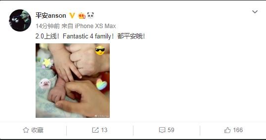 8月8日晚,歌手平安在社交平台上公开自己喜得二胎的消息,一向都是才华横溢的平安就连公开二胎的画面也是充满了文艺感。平安:2.0上线!Fantastic 4 family!都平安哦! 看到一家四口一起的画面十分的温馨。