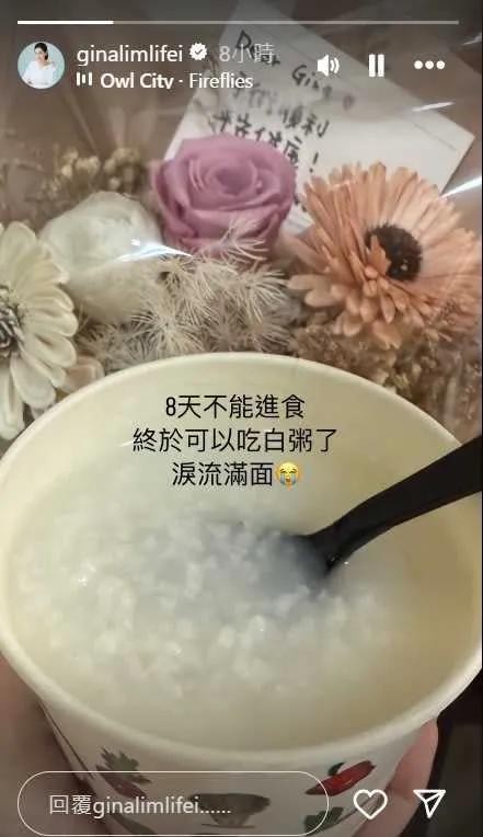 张翰也夸赞爱妻的努力,恢复速度才会超出预期的好,称赞她「太太恢复得很好」,在贴文最后也感谢大家的祝福。除此之外,林利霏也在自己的Instagram上发布限时动态,感动地说,「8天不能进食,终于可以吃白粥了,泪流满面」并附上正在享用的白粥。