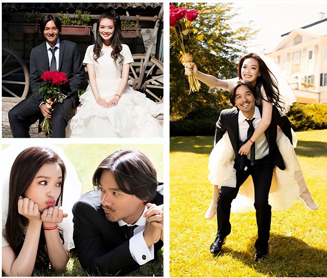 这婚纱照风格像极了当年舒淇和冯德伦的婚纱照,十分小清新。