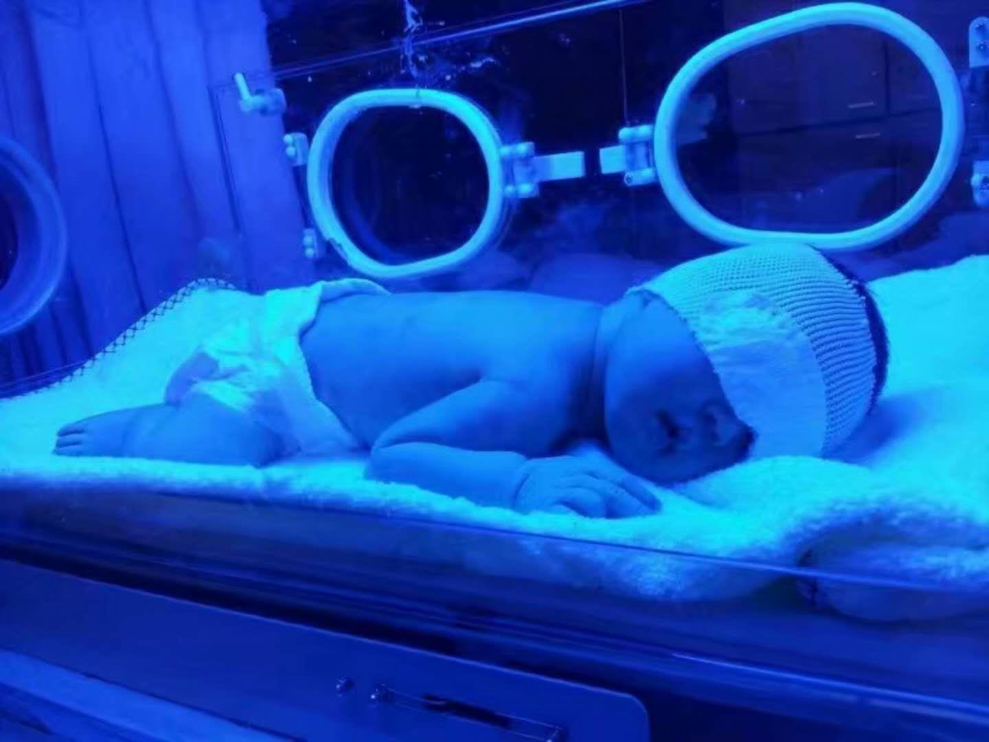 那么新生儿如果发现有黄疸偏高的情况应该如何治疗呢?小编以亲身经历来告诉大家。一般来说,新生儿刚刚出生,医院会给宝宝开一种叫樱之黄的口服液,特别苦,用来预防黄疸,但是不管用什么方法,小编家的大宝就是喝不下,在第三天的时候,护士检查黄疸时发现大宝黄疸偏高,当时由于第一胎,没有任何经验,可吓坏了小编。经过医生的解释之下才放下心来,因为黄疸偏高是新生儿非常常见的一种疾病,只要指数不是特别高,一般通过服药和照蓝光,加上平时多晒晒太阳即可以痊愈。下图为大宝当时照蓝光的照片,还清楚记得,当时小编老公和护士说“护士,麻烦您把我仔仔翻过来烤一下”,惹得护士们哄堂大笑,大家看照片是不是也觉得像是个烤箱呢?