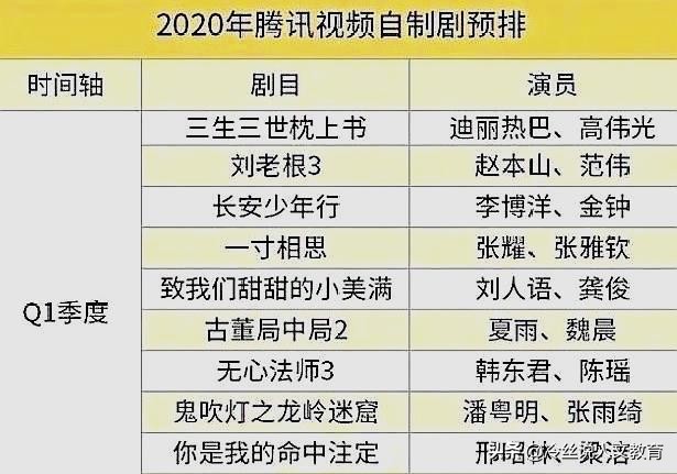 腾讯视频播放平台也有很多好的电视剧将在2020年播出,比如这样一些主演:迪丽热巴、潘粤明、张雨绮等等。