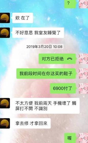 从聊天截图中可以看到,张馨予在一个月前请这位代购让其帮买鞋子,还当场给了代购6900元的微信红包。但对方一直以“手机坏了”、“室友睡觉了”等各种理由推迟发货时间,后来索性连电话也拒接,跟张馨予玩消失。