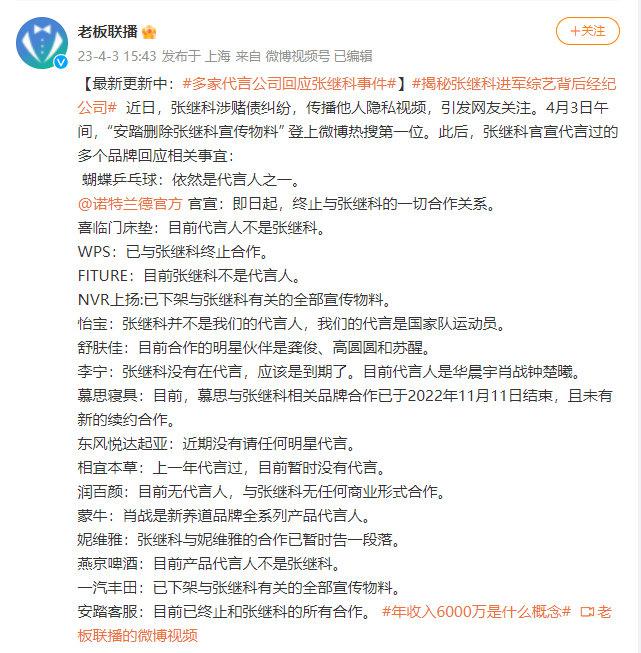 当初慕名而来的品牌方,在这场风波还未有定论之前,便纷纷作出了调整。网友发现安踏和一汽丰田已删除官方微博中与张继科有关的物料,很多其他品牌也相继声明已与张继科结束合作。
