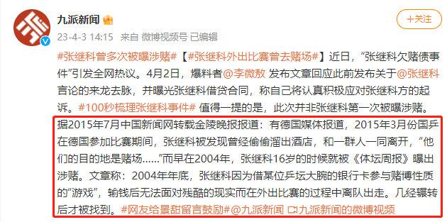 更有媒体发现,张继科被曝欠赌债一事似乎也不是凭空捏造,因为这并非是张继科第一次被曝涉赌,早在 2004 年和 2015 年,就有媒体报道张继科在外出比赛过程中有涉赌的可能性。