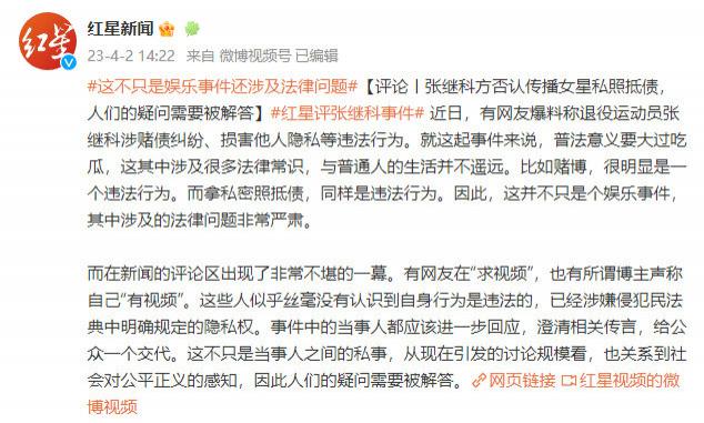 目前,张继科一事尚无定论,但就目前情况来看,此事并不只是娱乐事件,断然不能被当成娱乐八卦来消解,其中涉及的法律问题更应引起重视。张继科事件中涉及的赌博、拿私密照抵债都是违法行为,而求找私密视频的网友也同样可能涉嫌犯罪。因此,多家媒体就此事发表评论,相信其中是非曲直,自有公论。我们也期望风波之中的每一个人,都能得到公正对待。