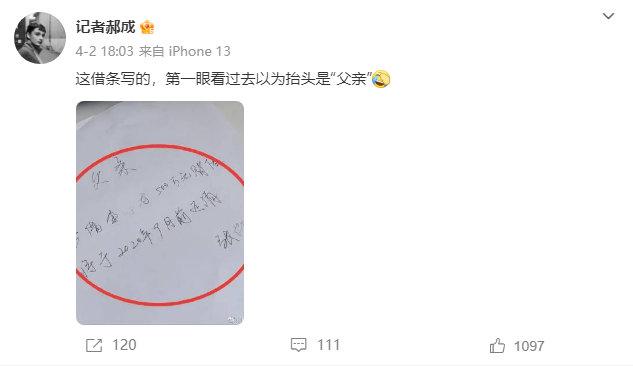 紧接着 4 月 2 日,就在张继科发声否认后的第二天,@记者郝成 在微博上发出一张欠条的照片,照片中显示的 "500 万 " 与此前媒体人@李微敖 所说的信息相吻合,并且李微敖还再度发布长文,曝出了更有分量信息。