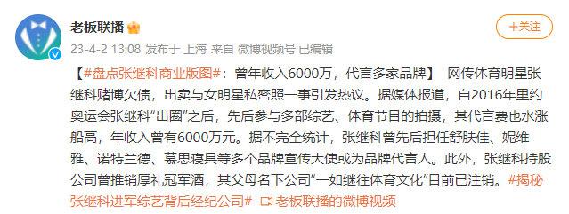 张继科选择沉默后,媒体对张继科的商业版图进行了盘点,作为最快获得大满贯的乒乓球运动员,又因里约奥运会 " 出圈 ",虽然多年未参加乒乓球比赛,但张继科却参与了多档节目的录制,收获了众多品牌代言,年收入曾一度高达 6000 万元。