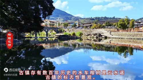 在水车旁有两个榕树经历百年风雨相互依偎,被当地人称为"夫妻树。2005年,改编自文学剧本《寻找》,徐若瑄等人领衔主演的爱情文艺片巨制《云水谣》将古镇作为电影的主要拍摄地。古镇名称就是取自该部电影的名字。