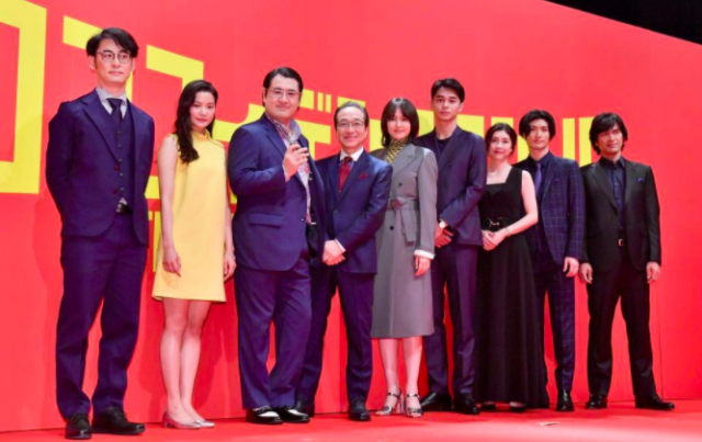 △ 《行骗天下》电影宣传现场,竹内结子(右3)与三浦春马(右2)皆到场参加。