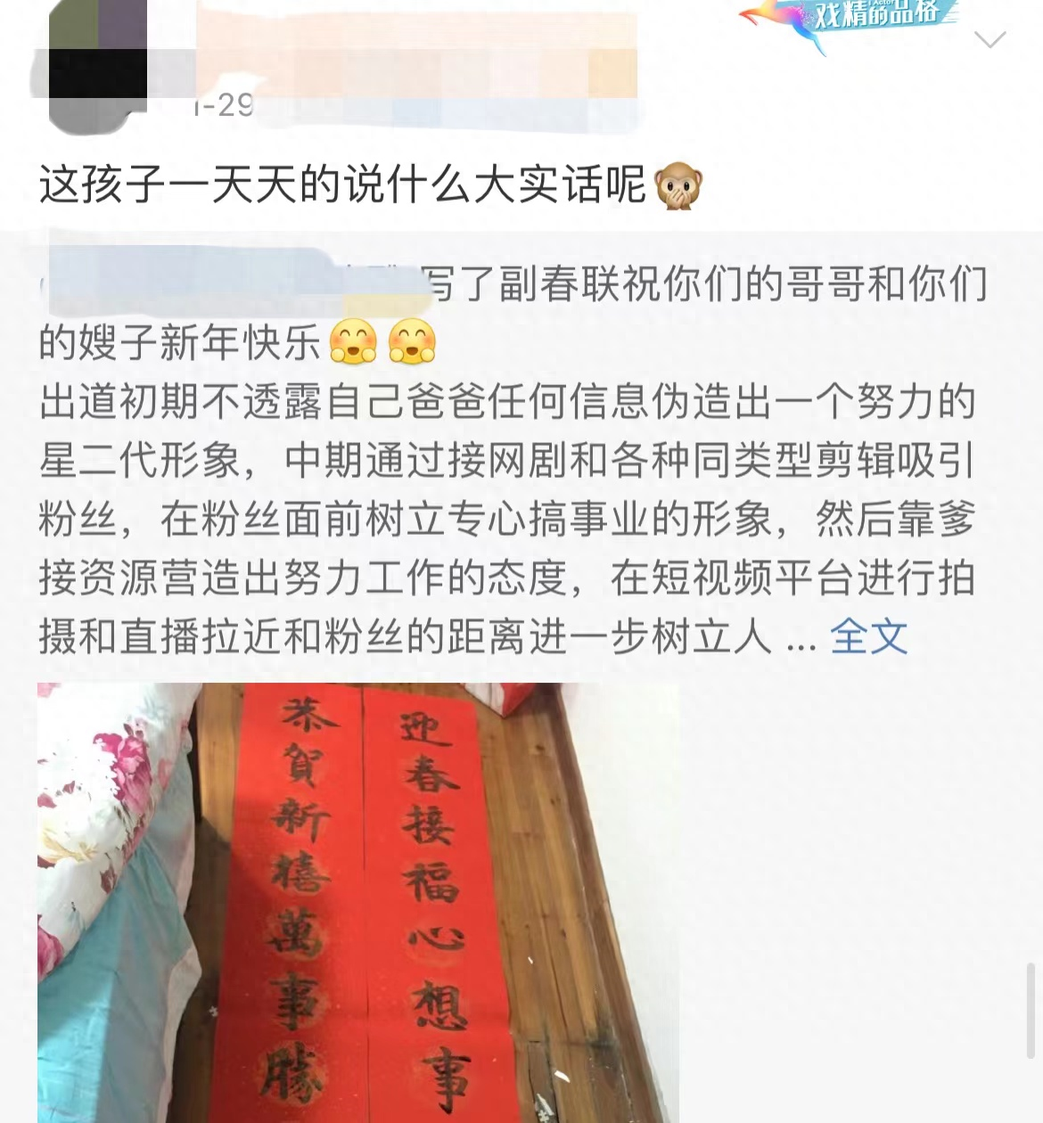 她首先是转发了其他网友吐槽刘怡潼的文章,称他从出道到成名一直都在伪装,只是为了打造一个好的形象,等到人设立住后就瞎玩感情,被狗仔拍到后选择承认,营造出一个负责任的艺人形象。
