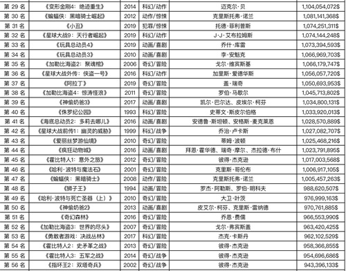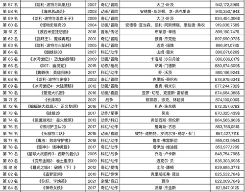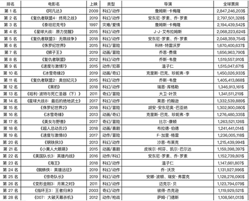 全球电影票房排行榜前100名