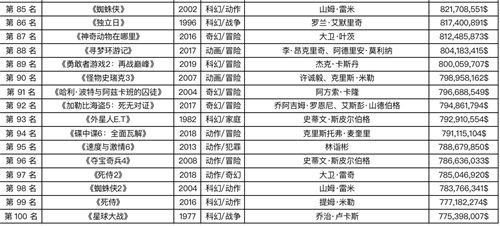 全球电影票房前100名