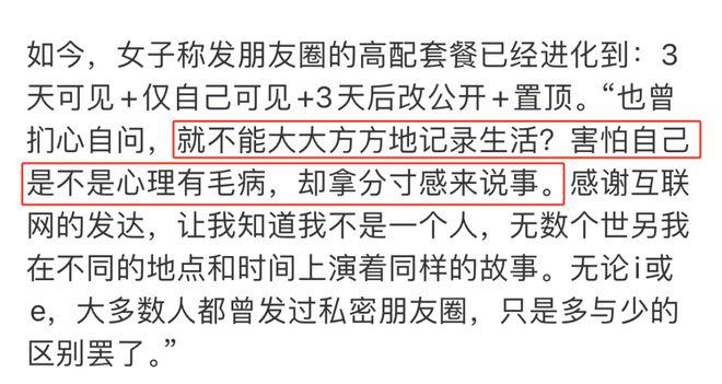 她对媒体表示,私密朋友圈是中年女性的舒适区。