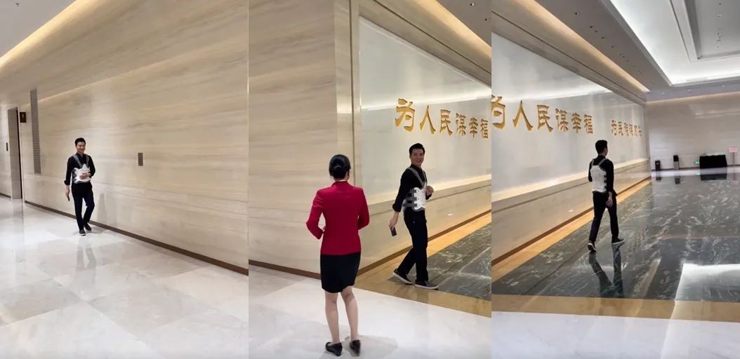 任鲁豫走路时一直把手放在护具上,当有工作人员和他打招呼时,他放下手微笑向大家挥手致意,给人的感觉相当亲和。