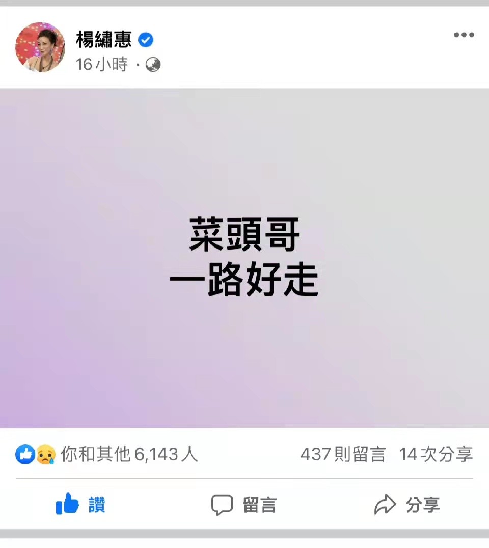台湾知名综艺主持人及资深艺人蔡头因肝癌去世