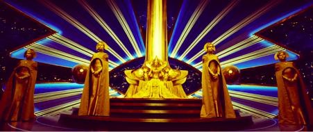 比如伊戈创造的那颗星球极富童趣和幻想、玻璃心种族全身都是金黄色用以代表他们对完美的追求和荒诞、勇度的葬礼上同伴用五彩的烟花纪念他武运昌隆的一生,以及 700 次跳跃中火箭勇度和舵手的那两段「啊啊啊啊啊啊啊啊啊啊」双眼突出的搞笑造型,很容易让人联想到冰河世纪里那个二逼松鼠和嗨起来的海绵宝宝,这一切把一部看似正经严肃的科幻正剧,变成了笑中有泪的轻喜剧,就像黄金女王阿耶莎(Ayesh)看起来并没有那么庄重的时候,反倒显得很可爱。