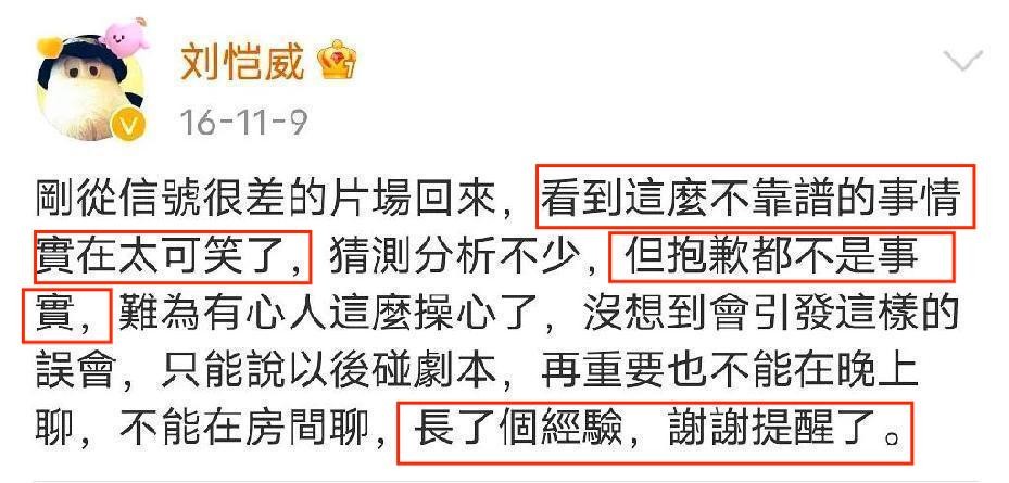 当天,事件的当事人刘恺威很快就做出了回应,直言狗仔的爆料子虚乌有,一切都是一场误会,深夜到访只是交流剧本,以后不会再在晚上去房间里讨论了。