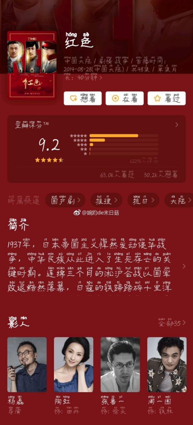 而今天,一梅同学为大家带来五部高分精彩的抗战剧,它们让我相信国产抗战剧不是不能拍好,只是缺好剧本好导演好演员。