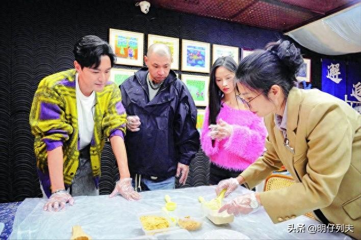 随后,明星们来到了龙门非遗馆,这里是他们体验惠州传统美食——龙门炒米饼的地方。龙门炒米饼,这一非物质文化遗产,不仅是惠州的美味代表,也是岭南地区传统小吃的象征。通过工作人员的细心指导,萧正楠、金刚、蓝珊珊等人亲手制作了炒米饼。在体验制作过程的同时,他们也对这一传统美食充满了好奇和惊讶。“炒米饼,顾名思义就是用炒过的米粉制成的饼,”萧正楠在品尝自己亲手做出的米饼时,连连称赞:“好香,好好吃!”