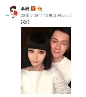 但范冰冰对于这次绯闻不断否认,媒体又不断曝光,显然是工作室的炒作手段,不断将绯闻推向高潮,引人瞩目。2015年5月29日,李晨发博并晒出与范冰冰的亲密合照,称:“我们”。照片中,两人面露微笑,互相依偎,还穿着情侣白色上衣。随后范冰冰转发该微博并发言“我们”。从此,两人的恋情公开官宣。