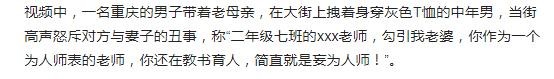 对比男老师默认的态度,男子妻子态度嚣张得多,拒不承认自己出轨。