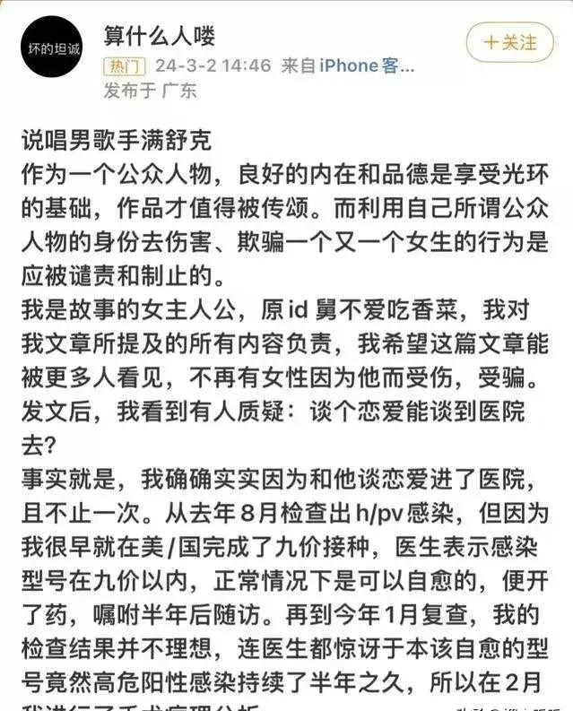 而且啊,满舒克在前女友A最需要他的时候居然选择了逃跑,医药费也不给,还不给人家个公开的道歉或者解释,这让他的个人形象受到了非常大的冲击。网民们更是一边倒地表达愤怒:满舒克简直就是个不负责任、毫无担当的人,应该让法律把他抓住好好修理一番。对此,有人拉他和之前的“吴亦凡”事件扯到了一起,觉得满舒克可能会成为下一个被审判的主角哦。