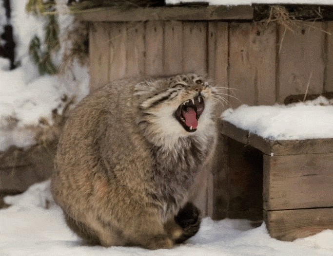 兔狲体态近似家猫,不过毛发更加长密,虽然看起来毛茸茸一大坨,但体重还不到5公斤,实属虚胖。