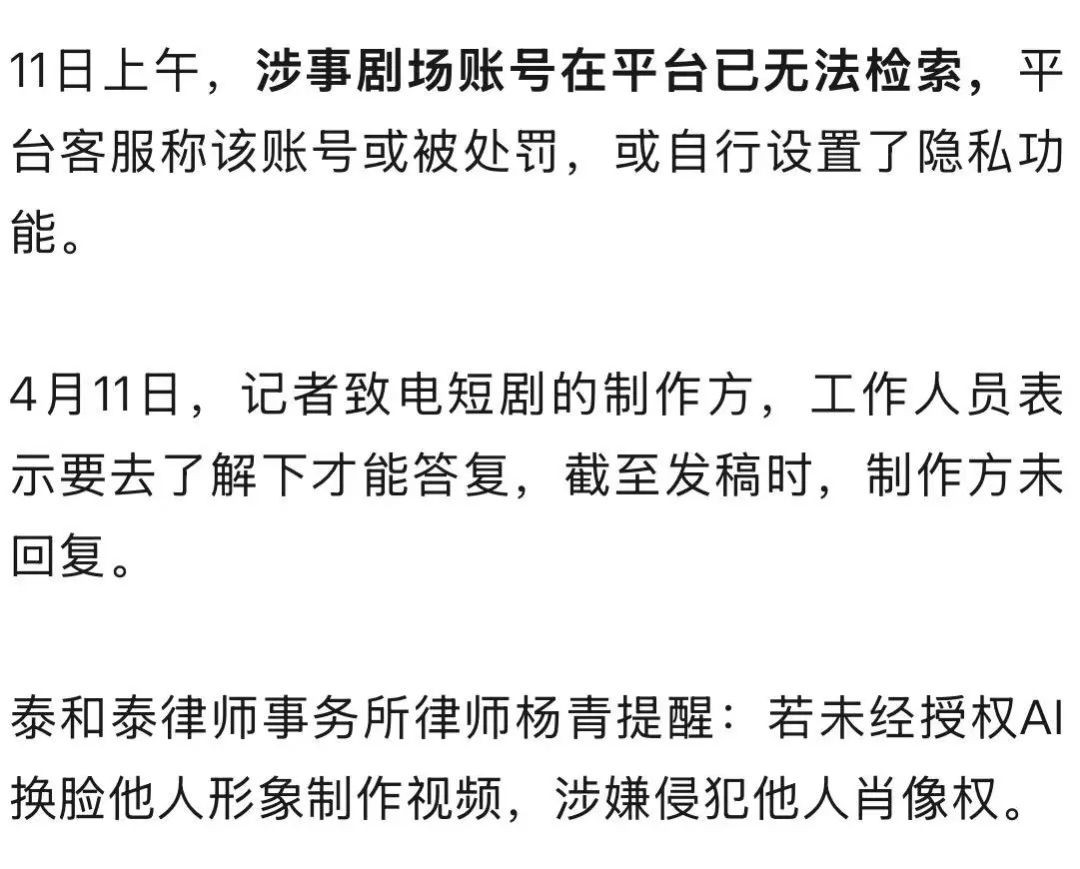 短剧疑似AI换脸迪丽热巴,一涉事剧场回应
