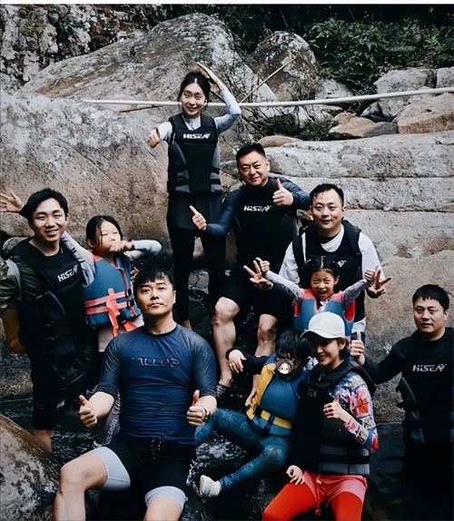 从照片中可以看出,陈思诚和佟丽娅穿越崎岖山路与深邃峡谷时,始终紧紧护着8岁壮实的朵朵,脸上洋溢幸福笑容,丝毫不见尴尬或生分。他们还与其他小伙伴愉快合影。