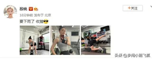 7月5日,殷桃在微博晒出一组健身照,还写道:“要下雨了 收摊”。照片中,殷桃身穿紧身衣,前凸后翘,身材管理满分。