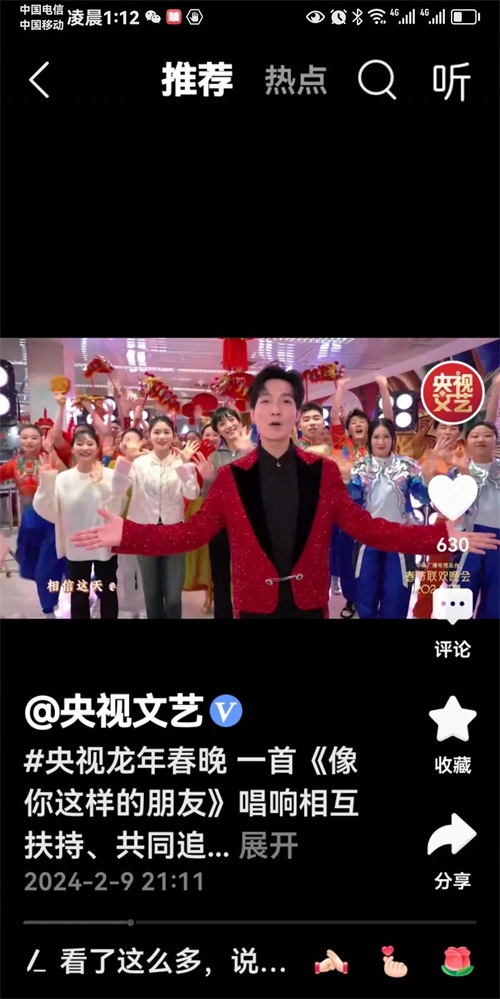 在央视龙年春晚的舞台上,一首《像你这样的朋友》如春风拂面,温暖了亿万观众的心。这首歌不仅唱响了友情的真挚与美好,更传递了人们在追梦路上相互扶持、共同前行的力量。