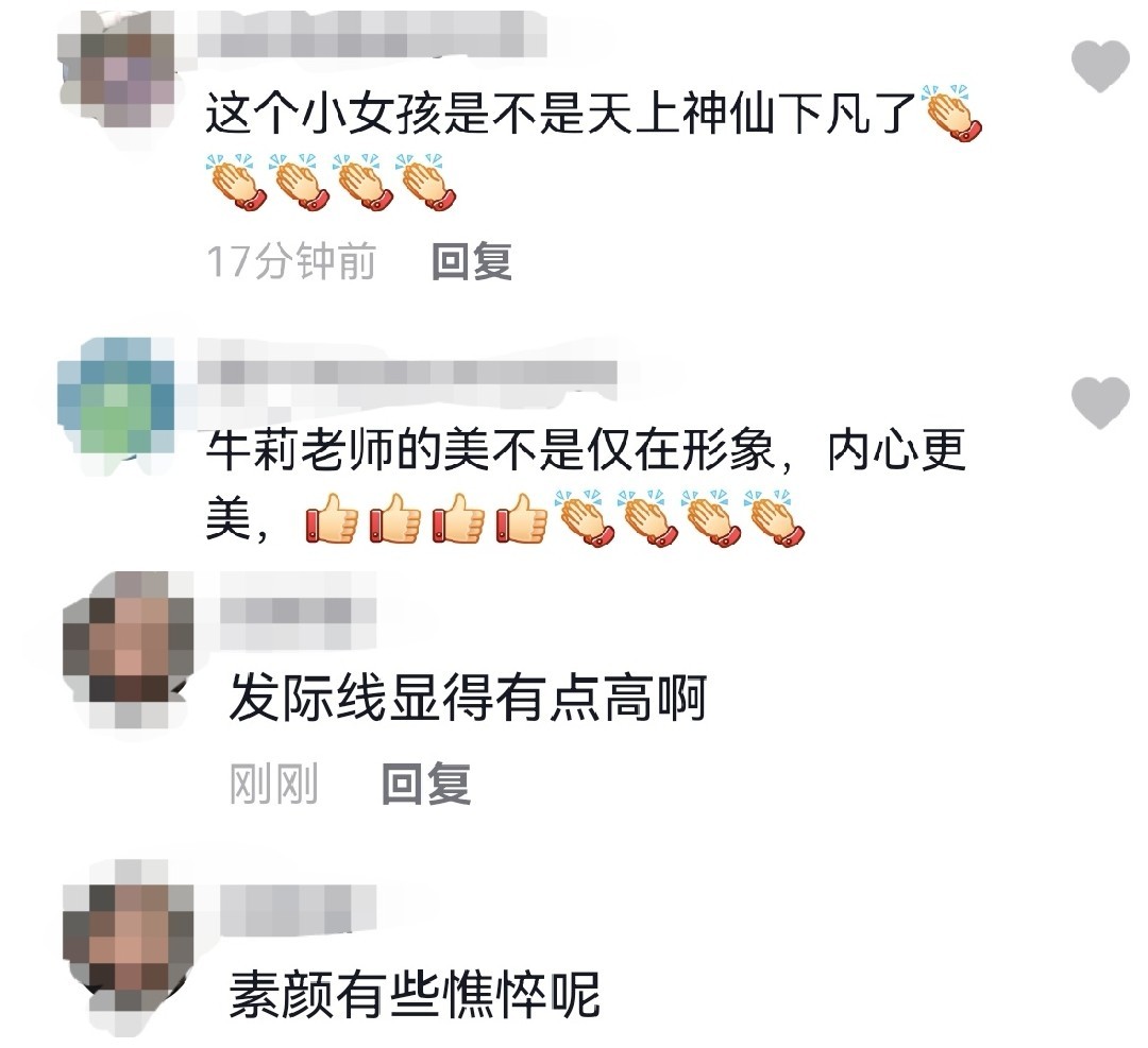 很多网友看到牛莉的状态后留言道“这个小女孩是不是天上神仙下凡了,牛莉老师的美不是仅在形象内心更美”,但也有网友评论称“素颜有些憔悴呢,发际线显得有点高啊”。