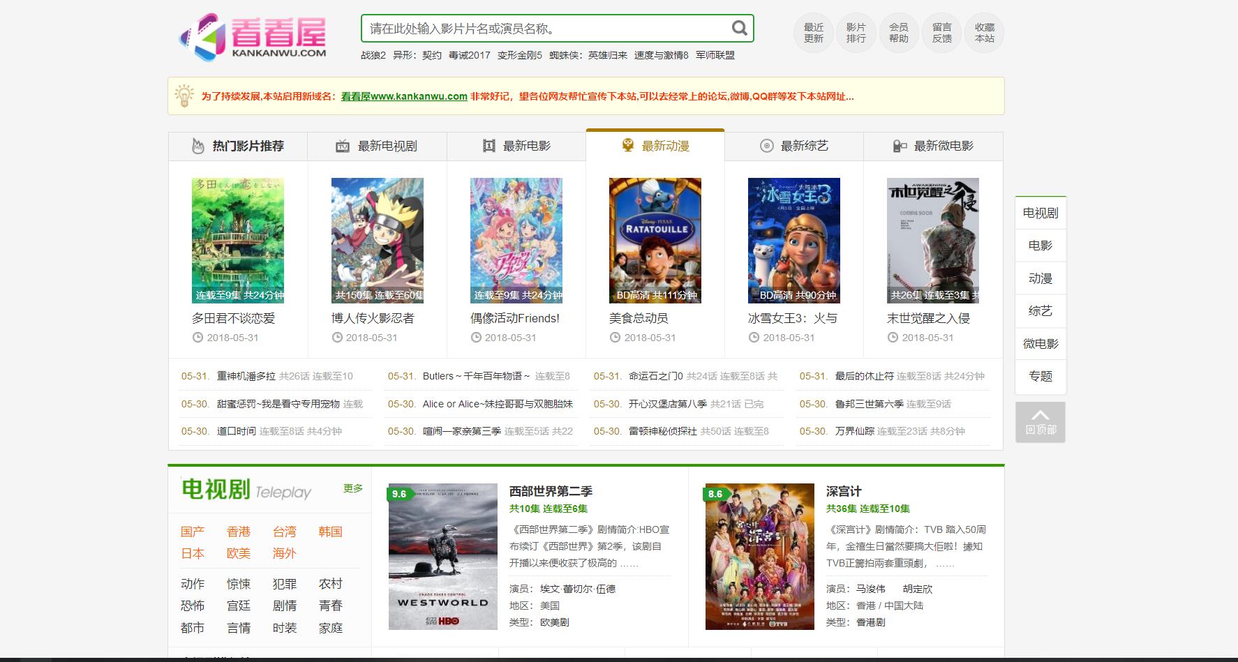 影视看看,一个免费看电影网站,支持最新电影免费观看,付费电影免费观看,支持迅雷下载和在线观看,另外也支持电视剧、综艺、动漫等影视资源的观看,侧栏有每日电影更新和电影排行等,界面还算简洁,没有广告。
