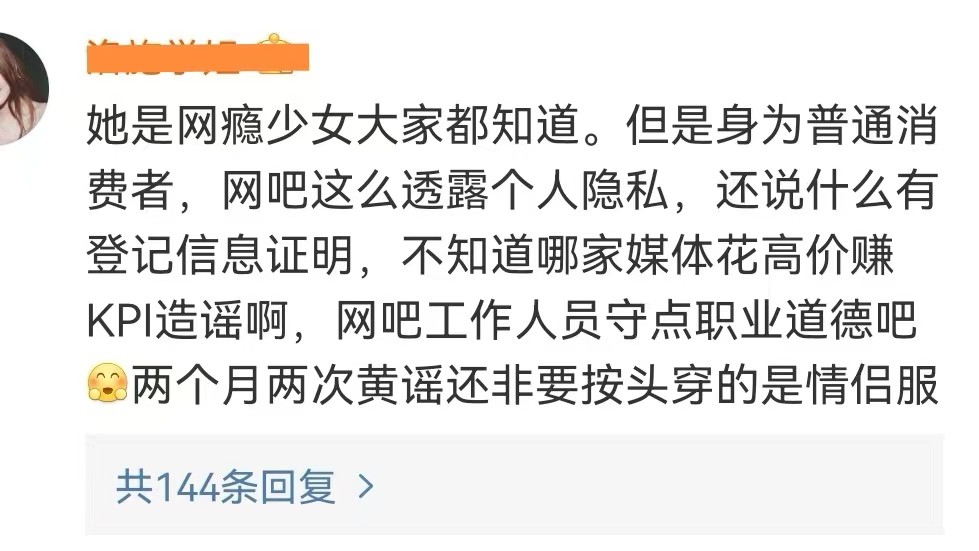 另外,还有网友提出了质疑,为什么监控视频会泄露,如果是路人用手机拍摄的还可以理解,监控视频泄露的话只有两种可能:一是网吧故意为之,就是为了蹭热度;二是网吧老板对员工的管理不到位。总而言之,大家认为是网吧老板不遵守职业道德从而泄露了杨颖的隐私,需要负一定责任。
